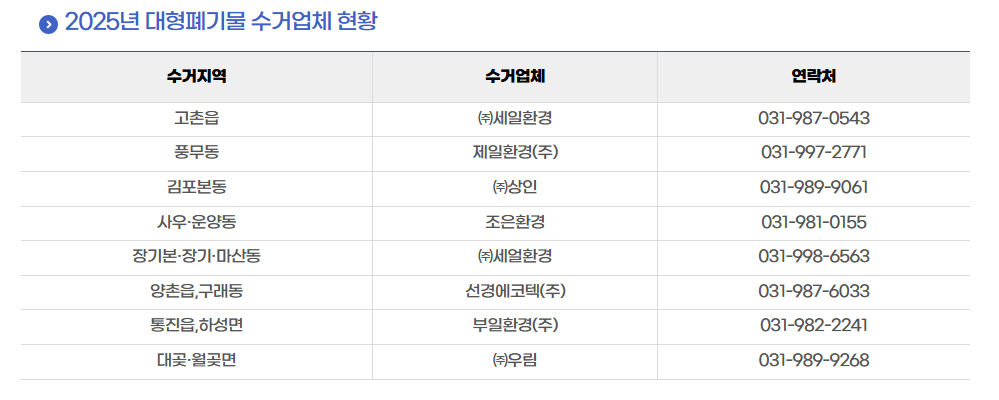 대형 폐기물 신고 및 문의 사항은 김포시청에 직접 연락하여 확인할 수 있습니다.